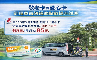 北市敬老愛心卡單趟補助點數,自115年2月1日起調升為85點
